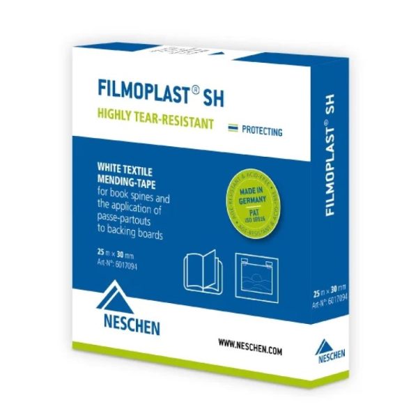 Wit katoenen textiel tape: Een zelfklevend wit textiel voor die applicaties waarvoor u extra sterkte nodig heeft. Het dunne Filmoplast® SH tape vouwt gemakkelijk waardoor het een goede keuze is om kaften opnieuw te verbinden met het binnenwerk.